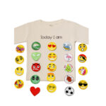 Kids, show the world how you feel! Wear our “Today I am” emoji t-shirt and express your feelings! With smiley, heart, pirate, football and many other emoji stickers.